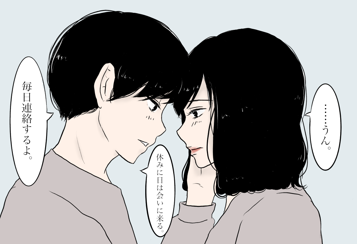 星野真美 (ライター) これら15枚のイラストは、Viola Wangさんが描いた遠距離恋愛中のカップルの日常。 一連の流れが、「切ないながらもキュンキュンする」と話題になっています。 実際に離れて過ごすカップルからの共感もかなりのものみたいですよ! 今回は、遠距離恋愛中のSNSのデメリットや上手な付き合い方のポイントについてご紹介します。 遠距離恋愛を長続きさせるための秘訣として参考にしてみてくださいね♡ 目次 遠距離恋愛中のSNSのデメリット1:相手の行動が気になりすぎる 遠距離恋愛中 ニコニコ静画は、「イラスト」や「マンガ」を投稿したり、「電子書籍」を読んだりして楽しむことができるサイトです。 かわいいね、レンカちゃん / 赫井苹果(あかいりんご) さんのイラストをもっと大きな画像で見る。